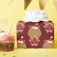 Divertido, Natal, papel de embrulho com ursos bonitos em roupas de Papai noel incluindo o chapéu em fundo burgundy. Adicione este papel de embrulho ao seu presente de Natal e tenha um Feliz Natal.