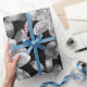 Papel de embrulho branco e preto florado para fazer uma declaração.