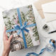 Envolva seus presentes na beleza serena da natureza com este papel embrulhado de Watercolor Cabin no Green Pine Forest Woodland. Apresentando uma cabana rústica aninhada numa floresta verde nebulosa, cercada por elegantes montanhas, esta design paisagística captura a essência