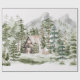 Papel De Presente Cabina de Aquarela na Floresta de Pinheiros Verdes