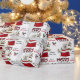 O padrão repetido neste belo papel de embrulho de Natal é uma imagem de um cão branco do Bichon Frise a espreitar de um saco de presentes de Natal vermelho e branco. Atrás dele está um sorvedouro de bagas sagradas e vermelhas. Um pássaro toucinho vermelho e preto está prestes a pousar. O texto da xadrez de búfalos vermelho e preto estilizado diz MERRY CHRISTMAS", e "Feliz ano novo" está em verde-escuro. Sua própria assinatura está em dois campos para você personalizar.