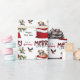 O padrão repetido neste belo papel de embrulho de Natal é uma imagem de um adorável filhote de cachorro-da-toalha a espreitar de um saco de presentes de Natal vermelho e branco. Atrás dele está um sorvedouro de bagas sagradas e vermelhas. Um pássaro toucinho vermelho e preto está prestes a pousar. O texto da xadrez de búfalos vermelho e preto estilizado diz MERRY CHRISTMAS", e "Feliz ano novo" está em verde-escuro. Sua própria assinatura está em dois campos para você personalizar. Certifique-se de ver as etiquetas de presentes correspondentes.