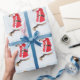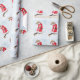 Cachorro bonito vestindo Papais noeis vermelhos e brancos sentados em padrão de neve design papel de embalagem de Natal. Encapsulamento de presente de Natal, legal, moderno e único. Procure mais itens correspondentes na minha coleção de loja. Imagem copyright Marg Seregelyi Photography.