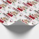 O padrão repetido neste belo papel de embrulho de Natal é uma imagem de um cachorro-cachorrinho loiro do Cocker Spaniel a espreitar de um saco de presentes de Natal vermelho e branco. Atrás dele está um sorvedouro de bagas sagradas e vermelhas. Um pássaro toucinho vermelho e preto está prestes a pousar. O texto da xadrez de búfalos vermelho e preto estilizado diz MERRY CHRISTMAS", e "Feliz ano novo" está em verde-escuro. Sua própria assinatura está em dois campos para você personalizar.