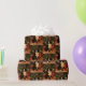 Enrole seus presentes no papel de embrulho de cachorro. As cores quentes ricas são justas para a estação festiva.