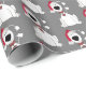 Um desenho animado de cão com um chapéu de Papai Noel em uma cinza. A cor de fundo pode ser alterada.