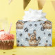 Um adorável cachorrinho de Yorkshire Terrier espiando de uma cesta mais vadia é a característica no padrão neste papel de embalagem de presentes, sempre. O retrato está em meio a um padrão de estampas pretas e ossos brancos, e é repetido sobre fundo azul-prateado. Perfeito para qualquer amante de Cachorro Yorkie!