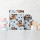 Um filhote de Dachshund preto e bronzeado adorável que se põe num cesto mais vestido é a característica do padrão neste papel de embrulho de presente de ocasião. O retrato está em meio a um padrão de estampas pretas e ossos brancos, e é repetido sobre fundo azul-prateado. Perfeito para qualquer amante de Cão Dachshund!