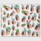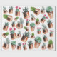 Papel De Presente Cactus e Sucultos em Potes Dourados Rosa