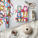 Este papel de embrulho tem uma design moderna do século médio de triângulos arredondados em filas.