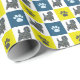Papel De Presente Cairn Terrier Dog & Paw Yellow & Blue Grid