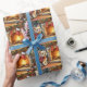 Papel De Presente Cairn Terrier Sitting Fireplace Christmas Lights