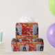 Uma foto de uma caixa de música de Natal que é um livro. É brilhante e colorido sentado no Red Christmas Present's. Isso é no papel de moldagem de Natal.