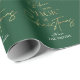 Preencha seus presentes de Natal com um papel elegante de embrulho de Natal personalizado. Este luxuoso e verde-esmeralda e papel de moldagem de presentes de Natal inclui a caligrafia de efeito ouro design de árvore de Natal, brilho dourado com letra moderna de escrita com um espaço para o nome da sua família.