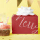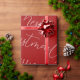 Moderno e elegante papel de embrulho vermelho de Natal Feliz. Caligrafia escrita à mão com letra branca.