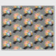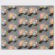 Papel de embrulho com uma ilustração de aquarela de uma câmera laranja com um buquê de flores e uma tira de filme ondulada preta e branca.