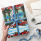 Papel De Presente Caminhão Vermelho e Árvores do Natal Branco Retroa
