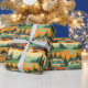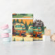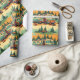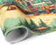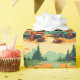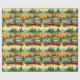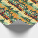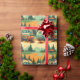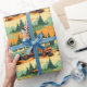 O presente de aniversário embrulha em vinheta cola verde, bronzeado e laranja acampar o presente com os campistas RV e pinheiros.