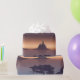 Um campo de incêndio perto do lago com belas montanhas pela manhã