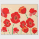 Ilustração Poppy Field. Flores de papoila vermelha em fundo bege. Os vermelhos simbolizam imaginação, resiliência, regeneração e luxo.