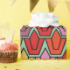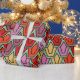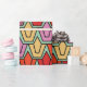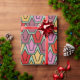 Este papel de embrulho tem um design de tulipas de deco de arte de pentágonos e trapezoides em laranja, vermelho, roxo, ouro e verde.