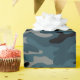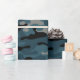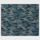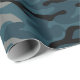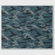 Este papel de embrulho de camo apresenta um padrão de camuflagem em azul e preto e cinza.