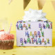 Camundongos cinzas bonitos com texto de aniversário feliz e colorido em roxo. A cor de fundo pode ser editada.