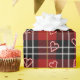 Papel De Presente Candy Cane Hearts and Snowflakes On Plaid