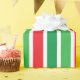 Um eterno de espírito natalício e elegância clássica. Faça seus presentes de Natal se destacarem com este papel de embrulho com listras tradicionais verdes, brancas e vermelhas, capturando a essência da estação em cores canaviais.