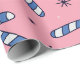 Um maravilhoso padrão de férias com canas doces azuis e brancas em um fundo cor-de-rosa pastel. Perfeito para decoração festiva e presentes sazonais únicos!