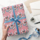 Um delicioso papel branco de embrulho com padrão floral e cardíaco, ideal para embrulhar presentes para seu amigo peludo.
