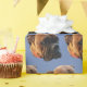 Envolva seus presentes com esse papel de mola de papel de mola para fotos de cachorro divertido. É desenhado a partir de uma foto pessoal de um padrão de rosto de cachorro de boxer giro. O plano de fundo azul é personalizável para qualquer opção de cor.