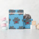 Impressão de pata de cão e aquarela cardíaca em vermelho, preto e cinza. Rolos de papel de embrulho leve personalizados. Ideia de presente para amantes de cães.
