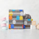 Este papel de embrulho tem um padrão de capacetes de obra de trabalhador da construção. Muitos capacetes diferentes pendurados em uma parede de metal ondulado, exatamente como em um canteiro de obras. Você pode aumentar ou diminuir o tamanho deste padrão neste papel de embrulho. Isso faz um ótimo embrulho para o ambiente de trabalho ou para embrulhar brindes promocionais de empresas de construção.