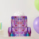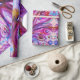 Vibrante, colorida fada das flores, espirais florais e uma planta de borboleta mágica, pintura contemporânea em aquarela em cores iridescentes roxo, violeta, rosa, fúcsia, azul e verde com folha dourada e prata por Bulgan Lumini (c)