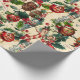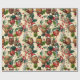 Este papel de empacotamento de natais vintages apresenta um padrão repetitivo de caracteres brancos e antropomórficos. A design inclui nozes felizes, maçãs sorridentes, doces cheios de alegria, pinecones lúdicos ou figuras parecidas com nutcrackers, todas vestindo chapéus festivos e colocadas sobre um fundo leve e manchado com holly e bagas. O estilo geral é nostálgico e retrô, perfeito para um visual clássico de feriado.