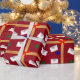 Enrolado em alegria de férias com esta design de Natal festiva! Apresentando vermelho clássico e ouro, apresenta letras brancas brancas e caprichosas endereçadas aos Papais noeis, junto a ornamentos verdes e azuis brilhantes, todos amarrados com um arco vermelho brilhante.