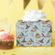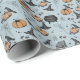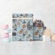 Este papel de embrulho de Halloween, artístico, mas elegante, apresenta ilustrações desenhadas à mão a tinta preta por Nathalie Portet. Contra um belo fundo azul francês, imagens de carruagems vitorianas para bebês, chapéus de bruxa, corvos pretos, abóboras, teias de aranha, caldeirantes e minúsculos cogumelos espetados adornam este papel de embrulho. Ideal para Chás de fraldas de Halloween, Halloween de 1rua, primeiro aniversario, Outubro Baby, Nova Mãe, etc.