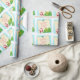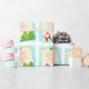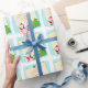 Carta de Cartoon Papai Noel de Papais noeis de papel de embrulho de Natal personalizado (Natal). Design apresenta um papel de bloco de notas, palha polegar e árvores de natal sobre um fundo azul pálido.