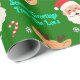 Envie desejos calorosos com este festivo papel de embrulho de Natal verde que contém Papais noeis e rostos de renas alegres, canas doces, flocos de neve, ornamentos e caixas de presentes. Personalize-o com seu nome de família ou mensagem de feriado para fazer com que cada presente se sinta especial. O estilo de desenho animado e o layout vibrante o tornam perfeito para crianças, presentes em família e embalagens sazonais alegres.