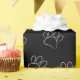 Desenhos de estampas de pata de cão com efeito de giz. Rolos de papel de embrulho de presente personalizados com fundo preto. Dar uma ideia para pessoas de todas as idades que amam cachorros.