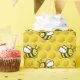 Cartoon voador de abelha sorridente sobre fundo de colmeia de abelha sem costura.