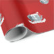 Design personalizado com ilustração de um elefante sorridente e fofo vestindo o chapéu vermelho de Santa Cláusula, em fundo vermelho; design animal feliz para crianças por Maxi Harmony; com modelo de texto personalizável para o seu nome ou mensagem