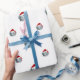 Design com ilustração de um elefante sorridente e fofo vestindo o chapéu vermelho de Santa Cláusula, em fundo branco; design animal feliz para crianças por Maxi Harmony;