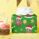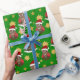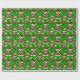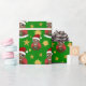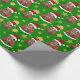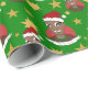 Papel de embrulho de Natal com ilustração de feliz sorriso de um homem afro-americano com o chapéu de Papai Noel; com modelo de texto editável; design de Natal com um fundo verde sem descontinuidades com estrelas