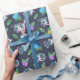 Os desenhos animados dos gambás bonitos revestiam papel embrulhado com um formato de flor colorida, rabiscos de folha e fundo azul.