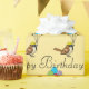 Uma ilustração de um giro cartoon kawaii com balões de aniversário coloridos. Celebre sua festa de aniversário de criança com este adorável padrão de papel de embrulho de pássaros.
