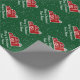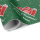 Casa de fazenda vermelha no papel de moldagem de Natal personalizado da neve. Design de Feriado de inverno bonito para amigos e família. Rolos de plástico personalizados para homens, mulheres e crianças (rapazes e raparigas). Personalizável com nomes e estações saudando como Feliz Natal ou Feliz Feriados. A cor de fundo verde é personalizável. tipografia de na moda. Disponível como acabamento maduro e brilhante. Material de embrulho de presente personalizado para crianças e adultos.