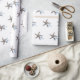 Papel de embrulho de casamento na praia branca com padrão de duas estrelas-do-mar. Uma estrela-do-mar marrom e uma azul claro juntas criam um padrão sobre papel de presente de alta qualidade em um rolo. Simples e doce para embrulhar presentes para dar aos recém-casados, presentes de chá de panela ou para qualquer casal que ama o mar. Este papel de embrulho pesado vem em vários comprimentos para que você possa comprar o quanto precisar.