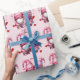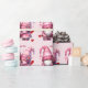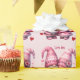 Este papel de embrulho de gnomos cor-de-rosa está pronto para seu embrulho de presente de Dia de os namorados ou projetos de festa. Imagem impressa do estilo de aquarela detalhado, abraço do casal gnome, com sotaque cardíaco de fundo. O texto simples diz "Ame-te" e é editável. Basta editar, se desejar, no editor fácil do Zazzle.
